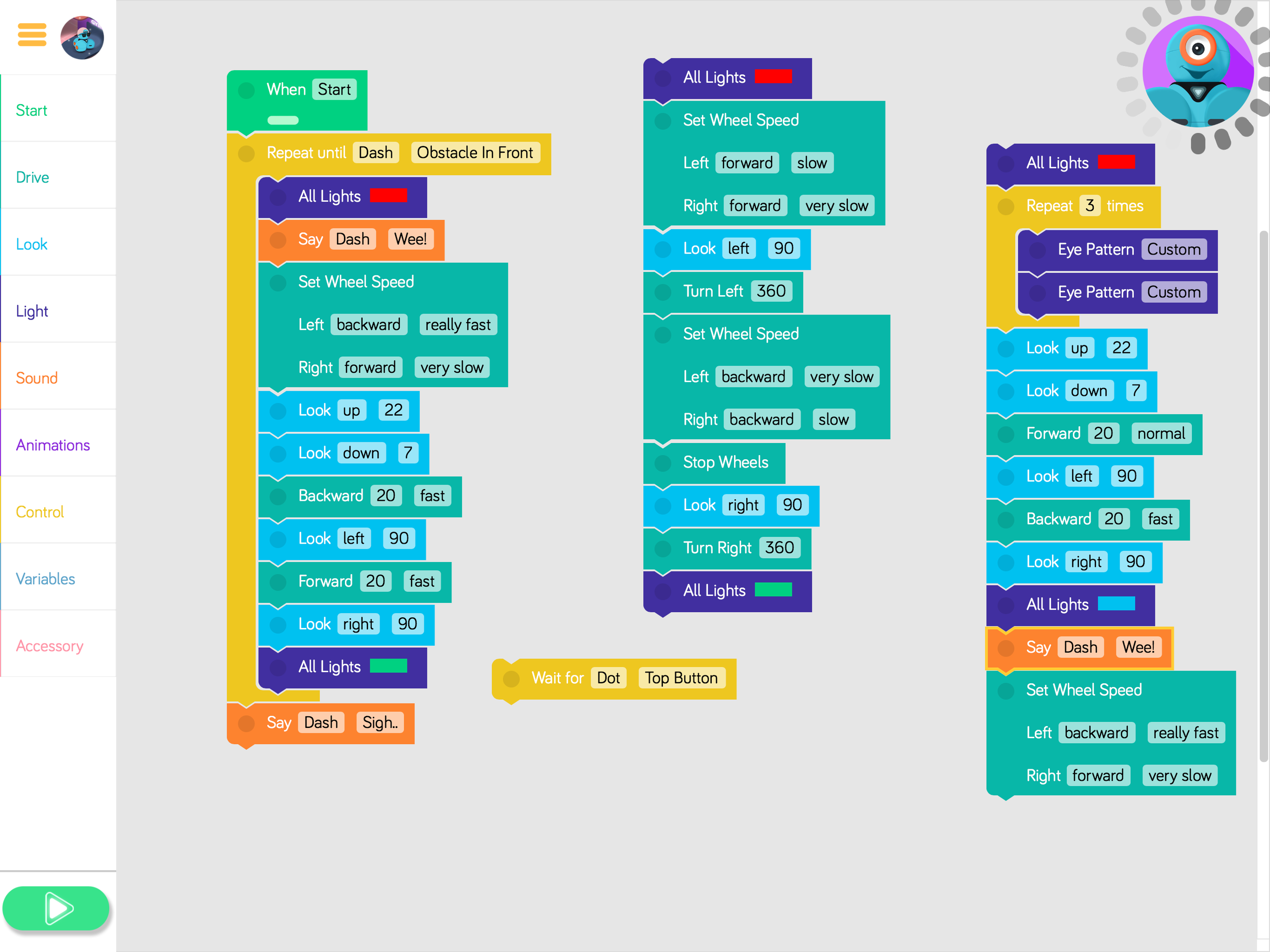 Third and Fourth year students code Wonder Workshops's Dot and Dash robots using the Blocky app on Apple iPads. Dot and Dash are interactive robots that responding to voice, navigate objects, and can even be programmed to dance and sing. Dot and Dash expand on the foundations of year 1 and 2, as students explore variables, events, conditionals and more advanced coding concepts.
